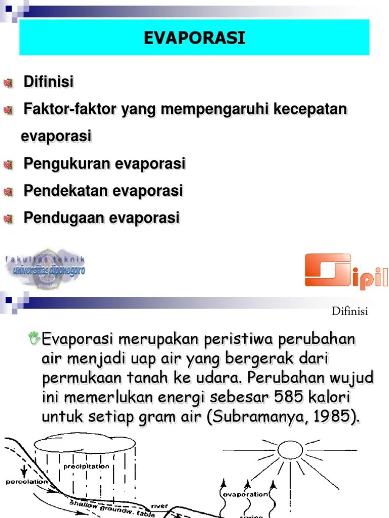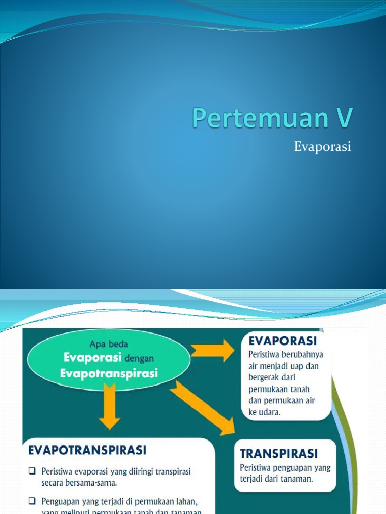 Definisi dan pengertian dari evaporasi adalah peristiwa perubahan air atau es menjadi uap dan naik ke atmosfir, peristiwa tersebut berlangsung dari semua permukaan, misalnya. Air tanah atau infiltrasi 34. Evaporasi merupakan suatu proses penguapan sebagi. Sesungguhnya itu adalah perkataan yang diucapkannya saja. Dan di hadapan mereka ada dinding sampal hari mereka dibangkitkan.